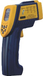 紅外測溫儀測量物體表面溫度,其光學系統(tǒng)匯聚被測物體的紅外輻射能量,匯聚到的能量聚焦在光電探測器上并轉變?yōu)橄鄳碾娦盘枺撔盘柦?jīng)電路轉換變?yōu)樽x數(shù)顯示LCD屏幕上,本機配備的激光燈能有效的對準被測物體及提高測量精度。