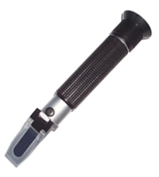 手持式折射儀是為測量溶液的濃度或水溶性混合物的比例而設(shè)計的精密的光學(xué)儀器。簡單易用,且價格優(yōu)惠。它是為測量多種溶液濃度而專門設(shè)計的,如:水果汁、飲料、蜂蜜 、鹽水、海水、清洗液、電池液、防凍液和工業(yè)溶液等.只要滴幾滴液體在棱鏡上,然后向著光觀察,就可以讀出溶液的濃度。如果標(biāo)有ATC的是增加了溫度自動補(bǔ)償系統(tǒng)。