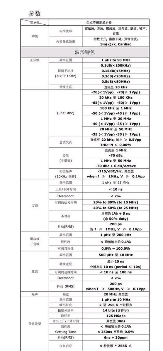 14位,125MSa/s,256K取樣點(diǎn)的任意波形 |