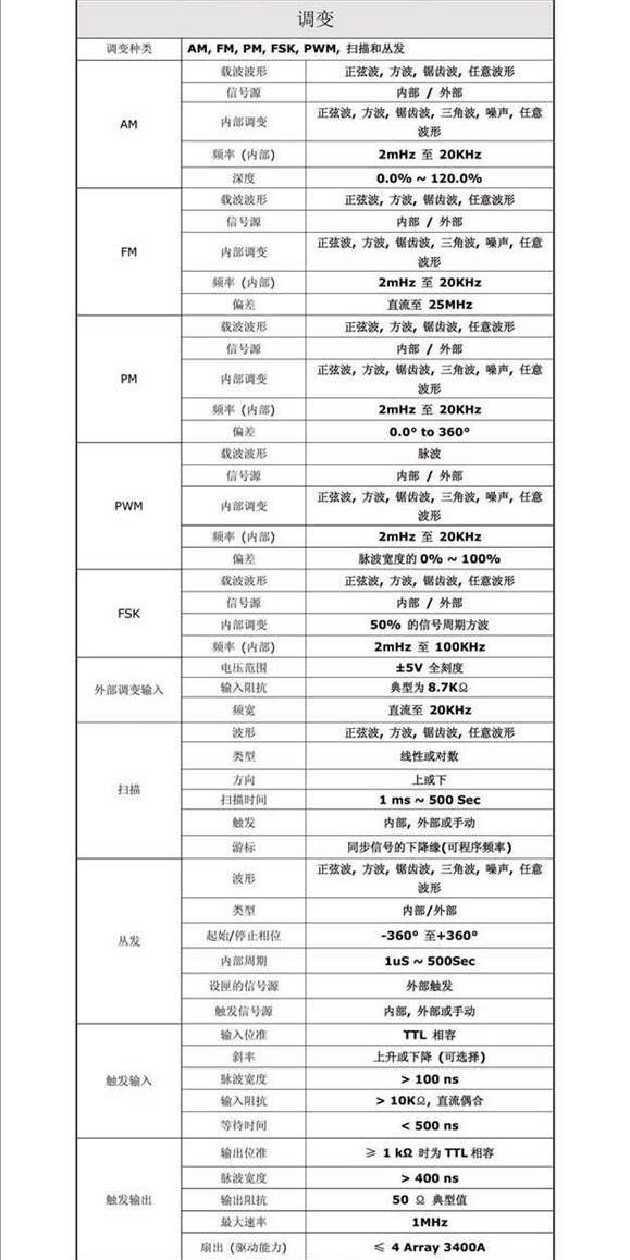 SM,FM,PM,FSK,及PWM等調(diào)制類型 |