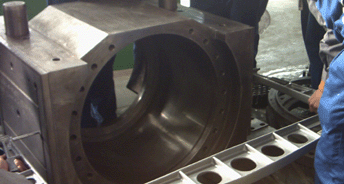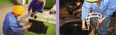 軋輥軸承箱與軋機(jī)牌坊配合通過(guò)安裝在軋輥軸承箱體外面的襯板來(lái)調(diào)整配合間隙,軋機(jī)工作過(guò)程中其磨損程度是不均勻的,通常邊部磨損嚴(yán)重而中間磨損很少。用一般千分尺測(cè)量檢查時(shí),由于尺架中部大圓弧的干涉,只能測(cè)量軸承箱的邊部尺寸而,而中部尺寸測(cè)量不到,致使檢測(cè)結(jié)果失真。使用仿型外測(cè)量千分尺,由于它們形狀和尺寸根據(jù)軋輥軸承箱制作,就可以較好的解決這個(gè)問(wèn)題。 |