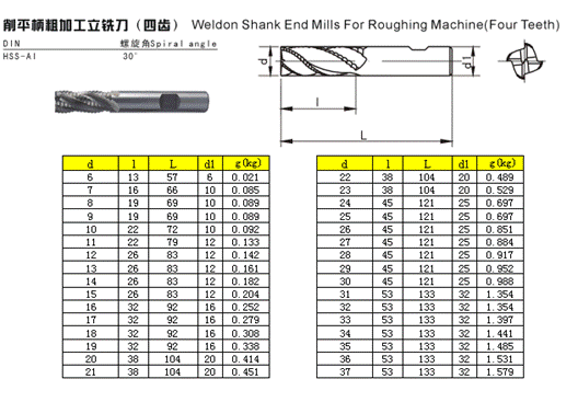 - 儀器名稱:削平柄粗加工立銑刀(四齒)