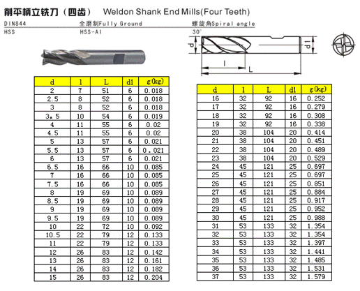 - 儀器名稱:削平柄立銑刀(四齒)