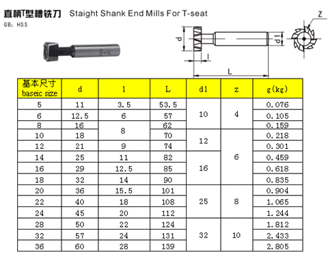 - 儀器名稱:直柄T型槽銑刀