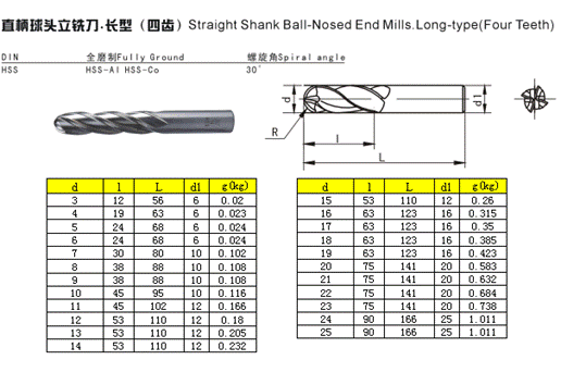 - 儀器名稱(chēng):直柄球頭立銑刀·長(zhǎng)型(四齒)