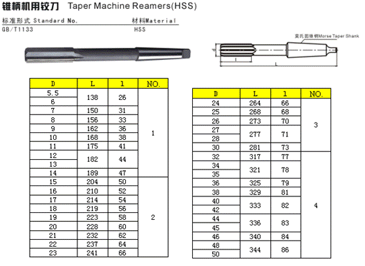 - 儀器名稱:錐柄機用鉸刀