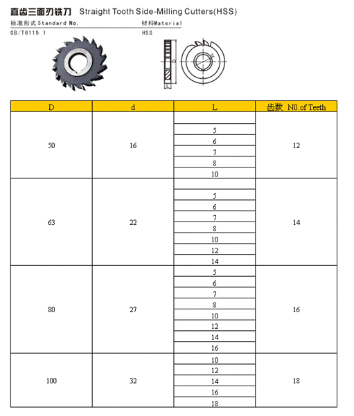 - 儀器名稱:直齒三面刃銑刀