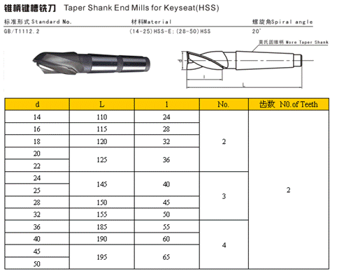 - 儀器名稱:錐柄鍵槽銑刀