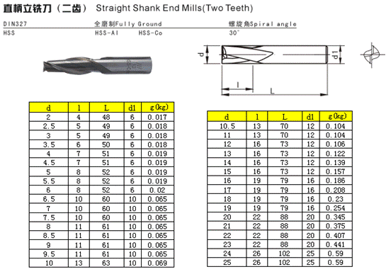 - 儀器名稱:直柄立銑刀(二齒)