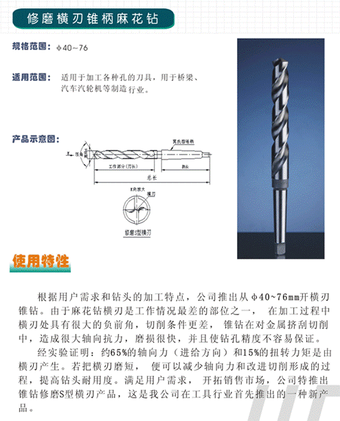 - 儀器名稱:修磨橫刃錐柄鉆