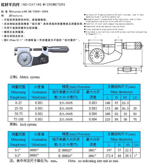 - 儀器名稱:杠桿千分尺