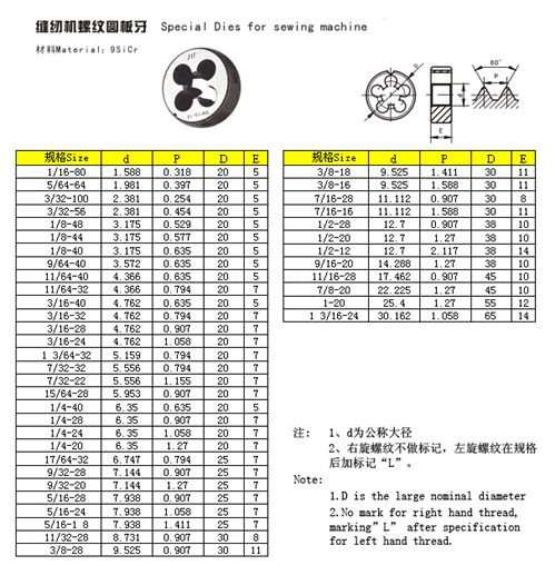 縫紉機(jī)螺紋圓板牙