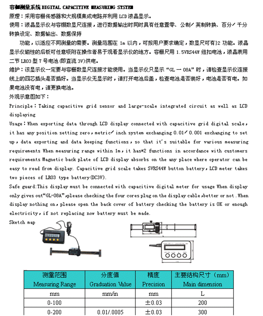 - 儀器名稱:容柵測(cè)量系統(tǒng)