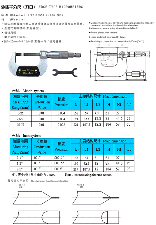 外徑千分尺(刀口)