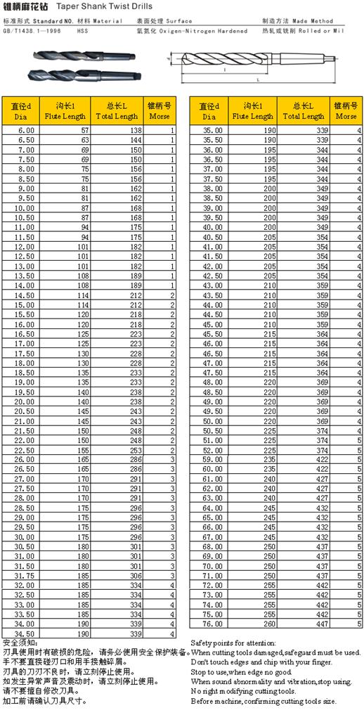 - 儀器名稱:錐柄麻花鉆