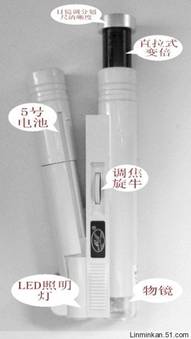 4、兩邊拉開電池盒部份燈就會亮,把觀察物放在防護罩中心,把眼睛對準目鏡,調(diào)節(jié)調(diào)焦齒輪,至看清為止。變倍時直接把目鏡拉出實現(xiàn)變倍,然后再調(diào)焦直到看清為止。