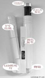 1、可調焦,并自帶純白光源采用長壽命(10年以上)高亮晶體發(fā)光二極管為照明視場,使用時不受環(huán)境光線限制。